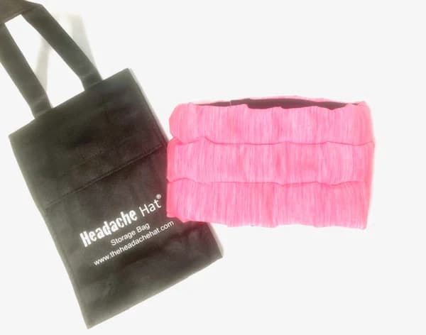 Headache Hat™ (in Pink/Black) is wearable, cooling therapy for Migraines Headaches. The patented, lightweight and flexible wrap design makes this ice wrap the best relief for all kinds of headaches.